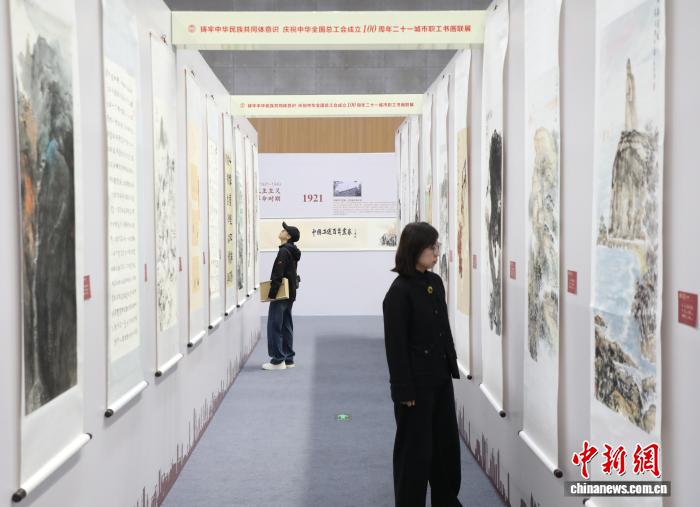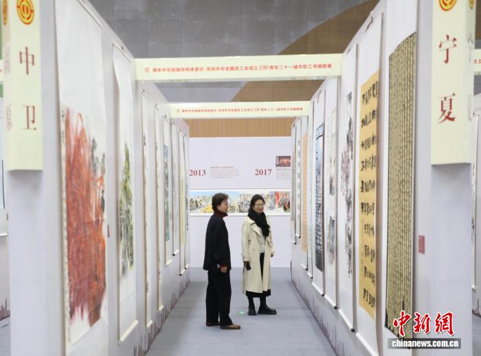 二十一城市职工书画联展(宁夏站)开展 223幅作品展百年工运